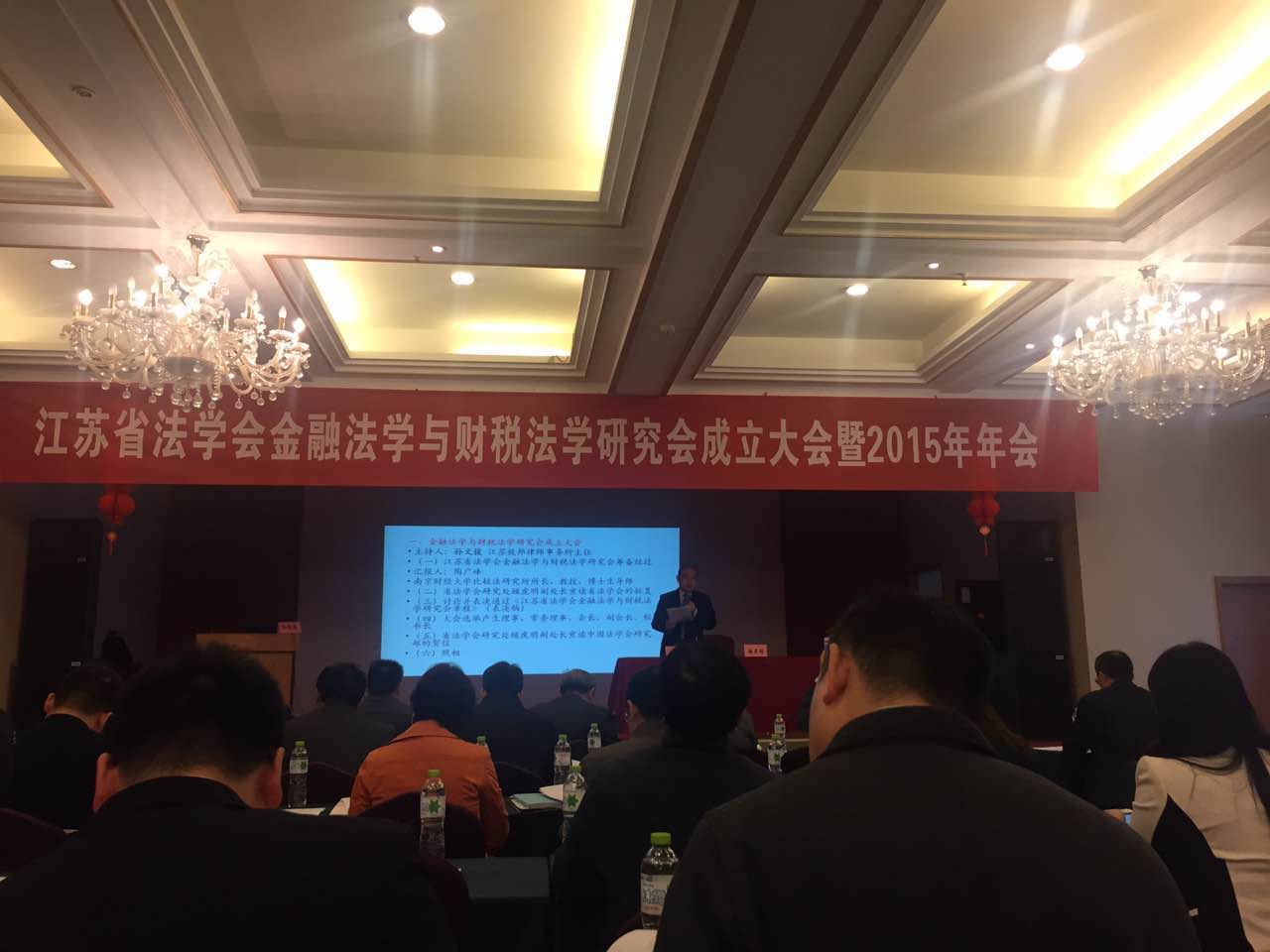 秋冬交替之际的2015年11月7日,南京刚刚经历了一场淅淅沥沥的小雨。在江苏省法学会的领导下,由南京财经大学比较法研究所承办、江苏致邦律师事务所协办的江苏省法学会金融法学与财税法学研究会成立大会暨2015年年会在南京凤凰环球酒店隆重举行。来自江苏省各地、各部门的专家学者和实务部门的会员代表130余人,冒雨参加了此次盛会。
