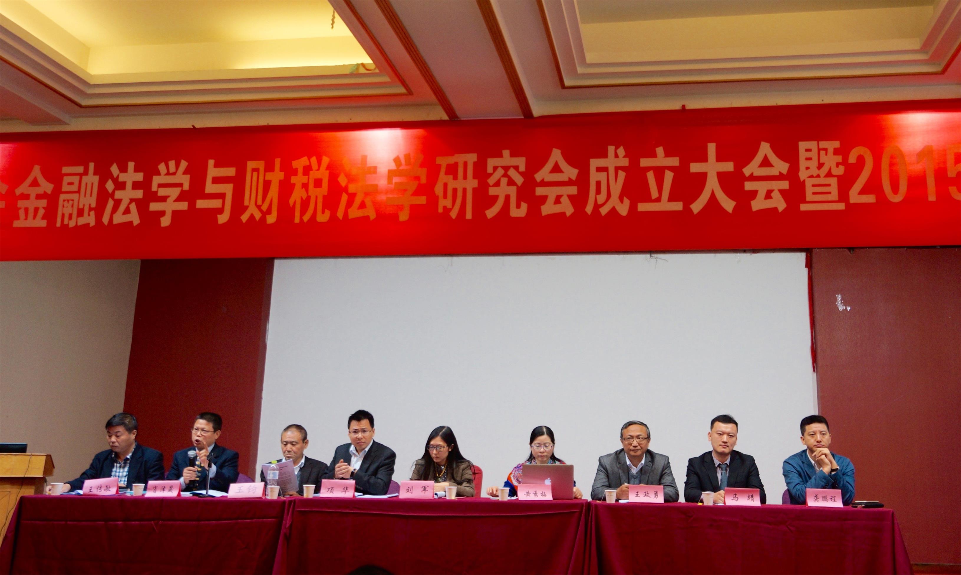 在年会的主题研讨阶段先后有30余位参会代表就金融法学、财税法学有关理论问题、实务问题作了精彩发言。内容涉及财税法的范畴、核定征税、法律的不确定性与税收法定原则的关系、企业并购税收、资产证券化中的转让定价干预、责任保险的内在逻辑与食品安全风险的控制、民间借贷与非法集资的区分实益、第三方支付下的法律风险、责任配置与纠纷解决机制、银行业市场化等。