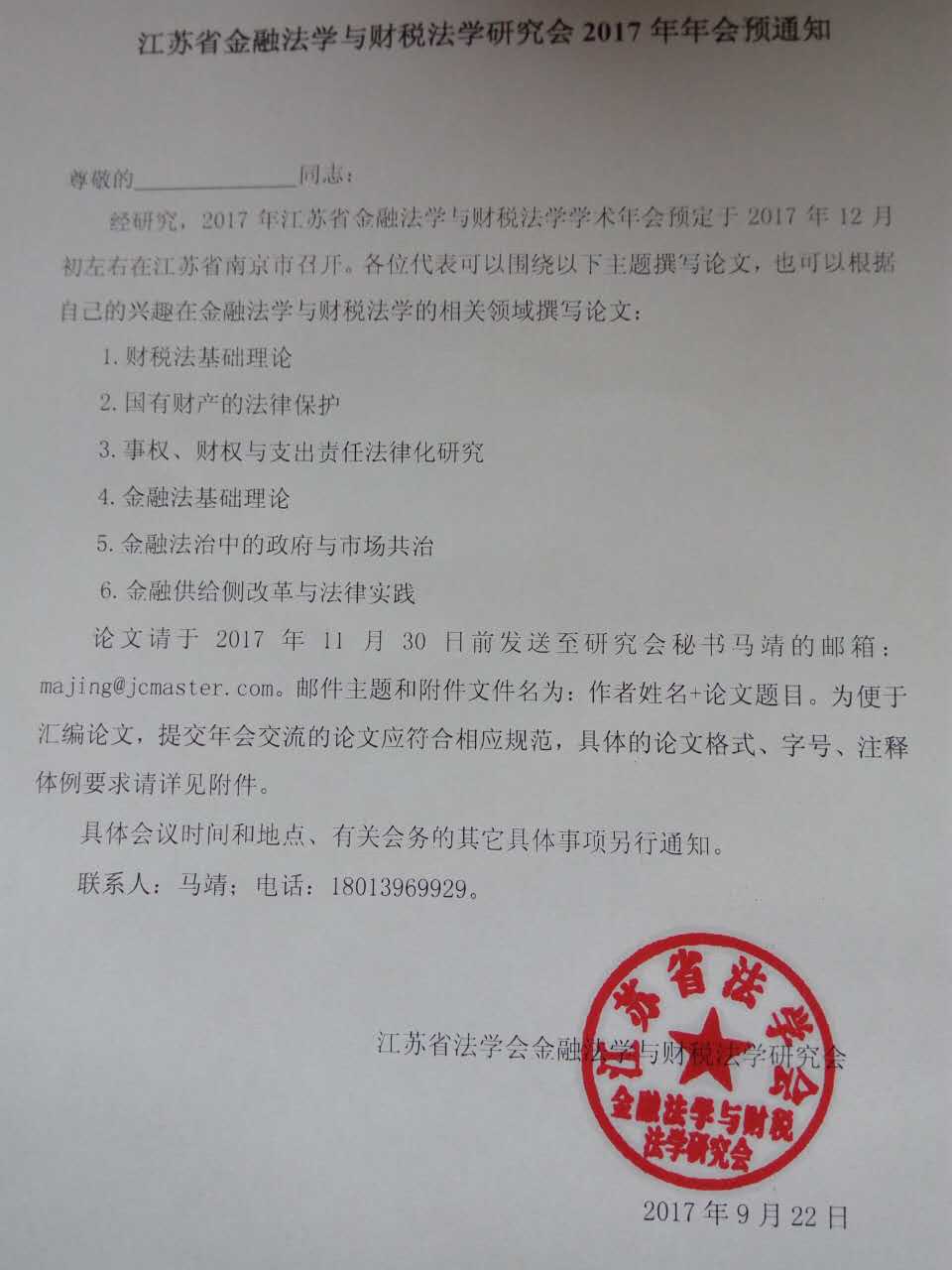 您好!欢迎来访江苏金融法学和财税法学研究会!今天是:2026年4月4日 星期六