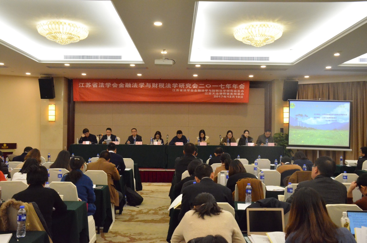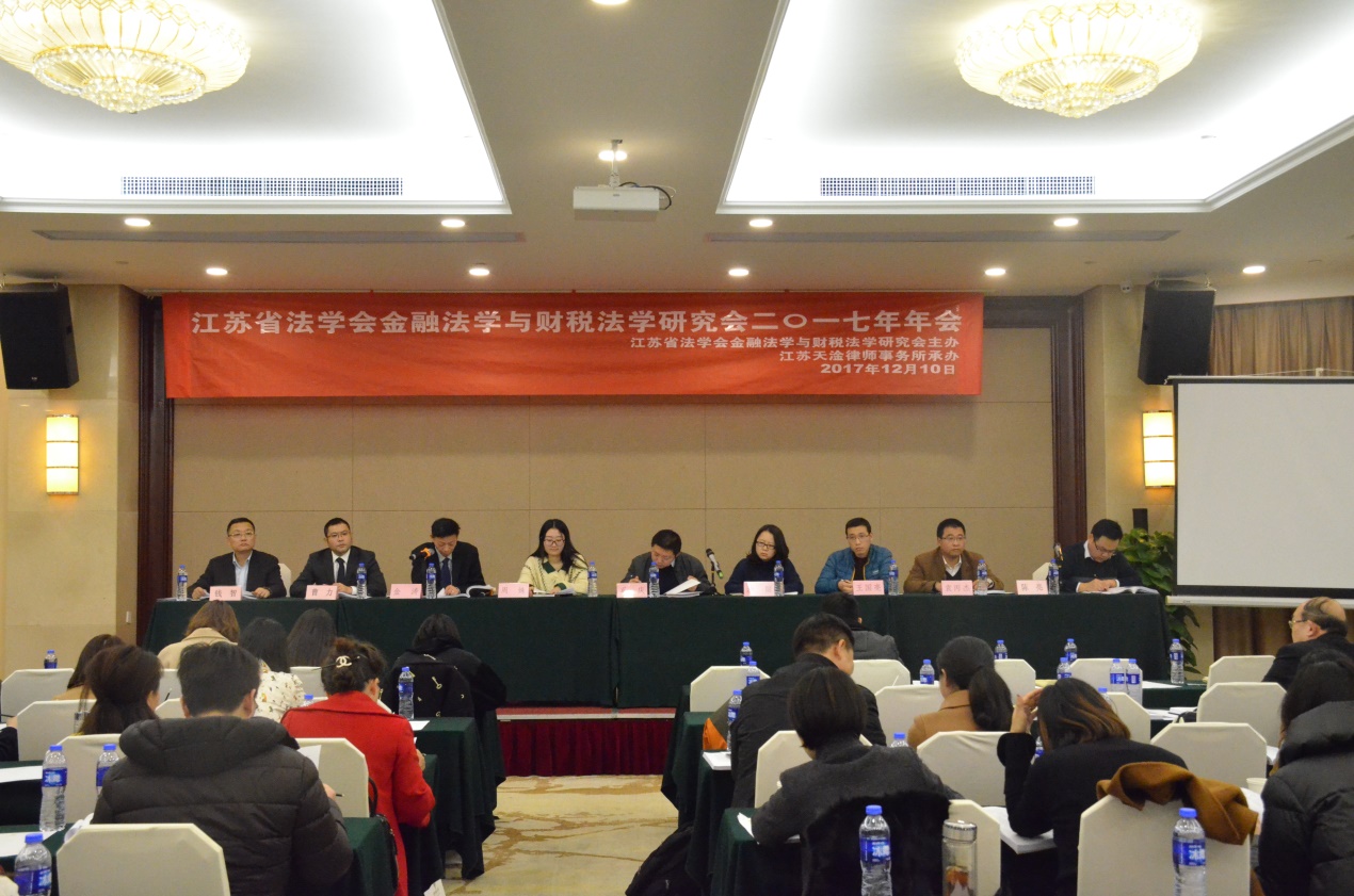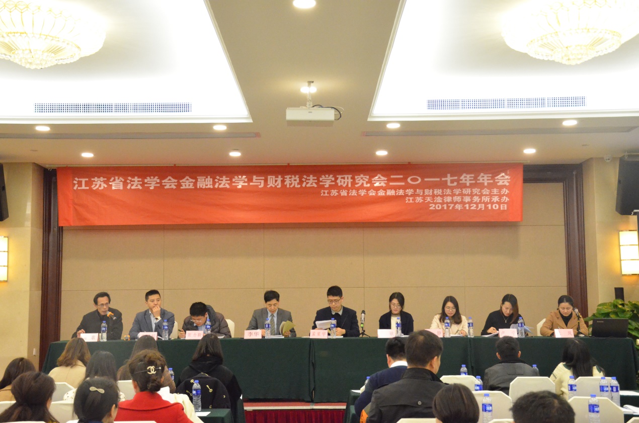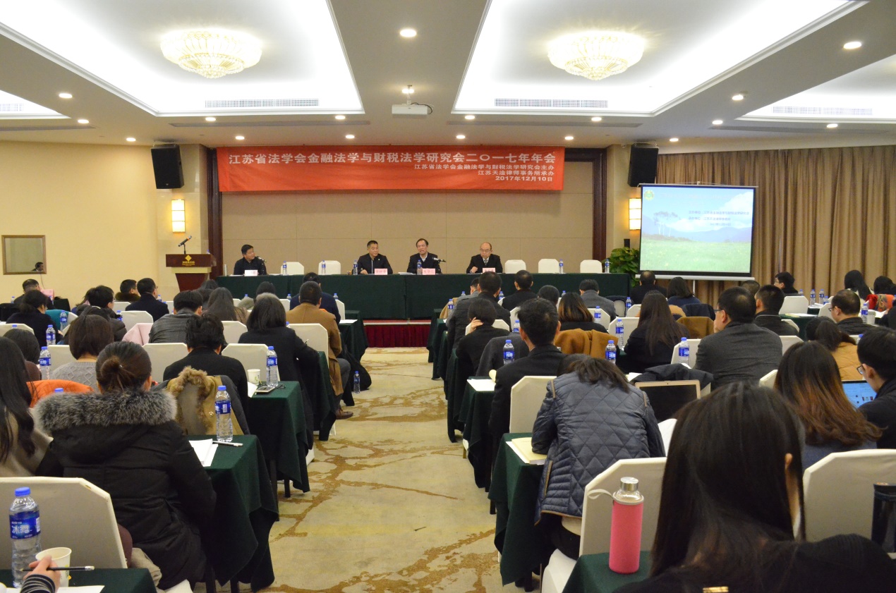 2017年12月10日,江苏省法学会金融法学与财税法学研究会2017年年会在南京熊猫金陵大酒店隆重举行,本次年会由江苏省法学会金融法学与财税法学研究会主办,江苏天淦律师事务所承办。来自江苏省法学研究会、江苏省金融与财税法学研究会、南京大学、南京财经大学、东南大学、南京工业大学、南京农业大学、中国矿业大学、江苏大学、江苏警官学院、江苏开放大学、江苏理工学院、江苏司法警官学校、淮阴师范学院等高校学者,以及来自江苏高级人民法院、南京市中级人民法院、南京市纪委、常州市中级人民法院、鼓楼区人民法院、南京市地方税务局与江苏天淦律师事务所、北京市中银(南京)律师事务所、江苏冠文律师事务所、江苏通税律师事务所等实务部门的专家一百余人参加了会议。
