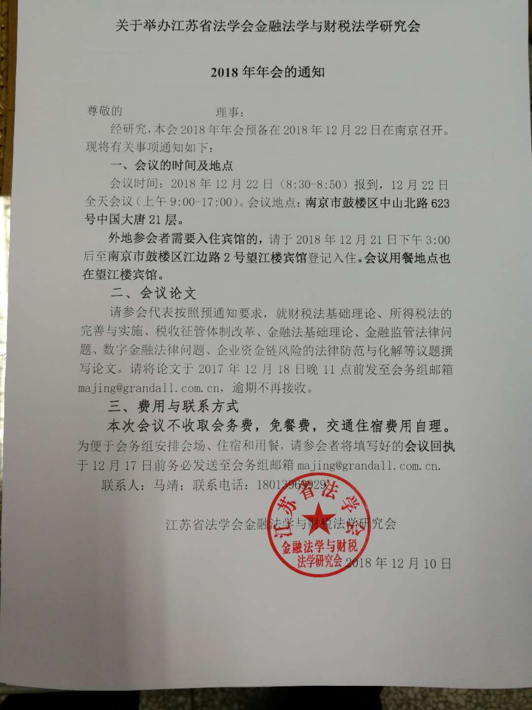 您好!欢迎来访江苏金融法学和财税法学研究会!今天是:2026年4月4日 星期六