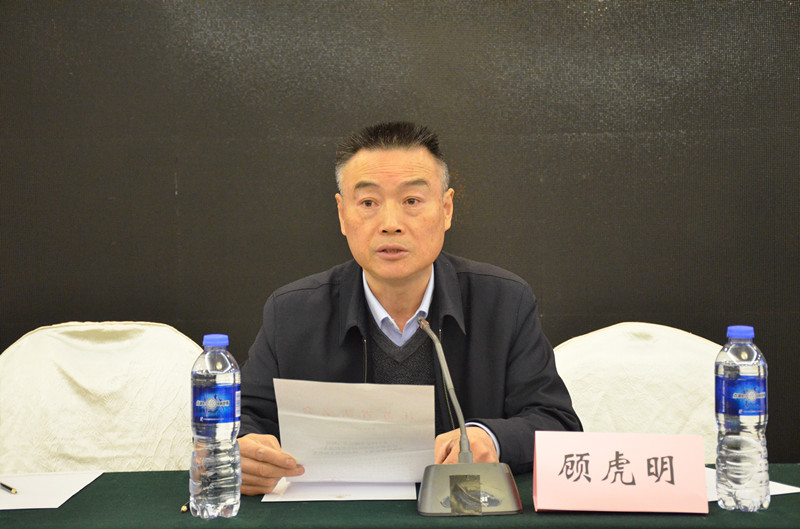 顾虎明代表省法学会宣读对增补理事、常务理事和副会长批复的文件
