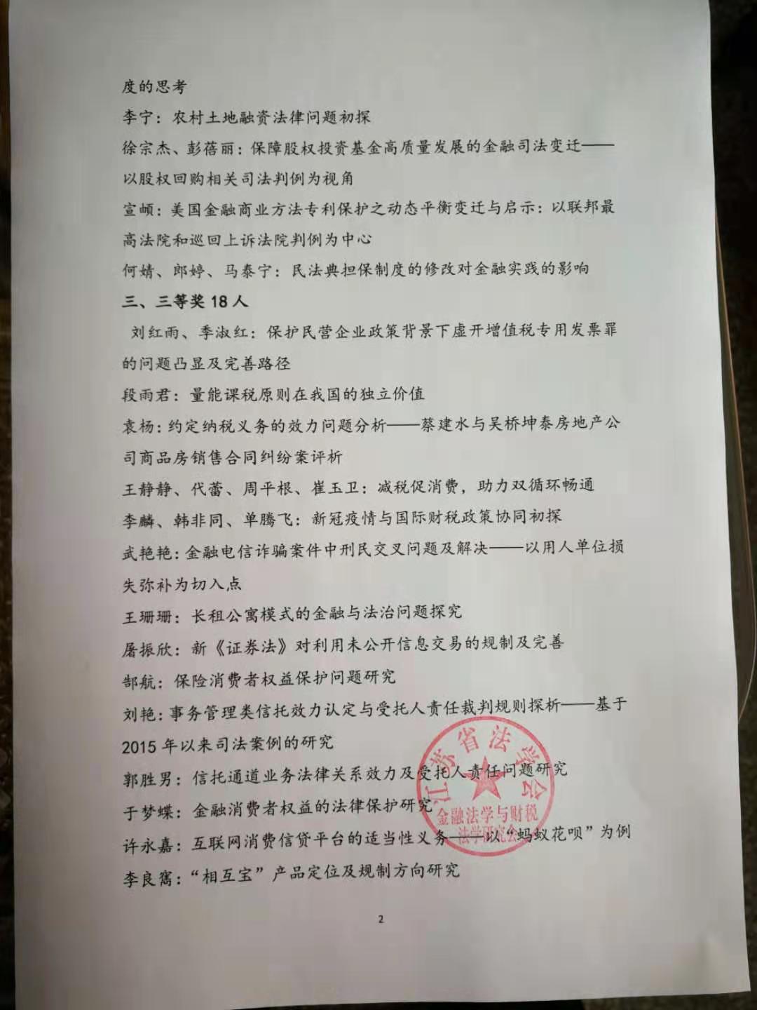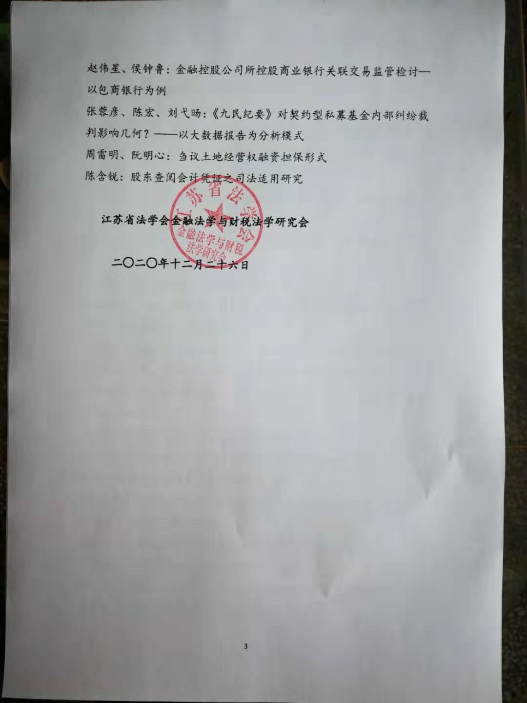 • 2020年12月26日,江苏省法学会金融法学与财税法学研究会换届大会暨2020年年会在南京举行。