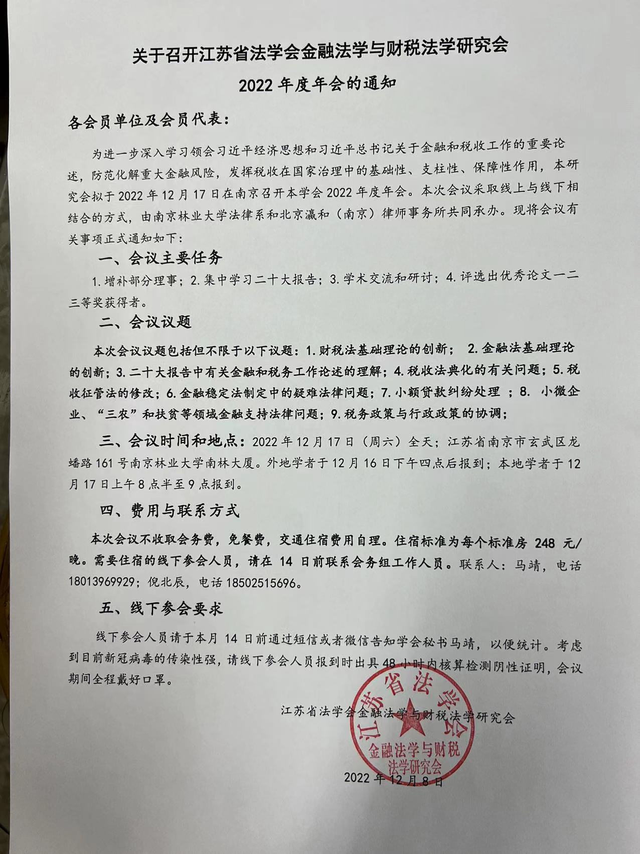 您好!欢迎来访江苏金融法学和财税法学研究会!今天是:2026年4月4日 星期六