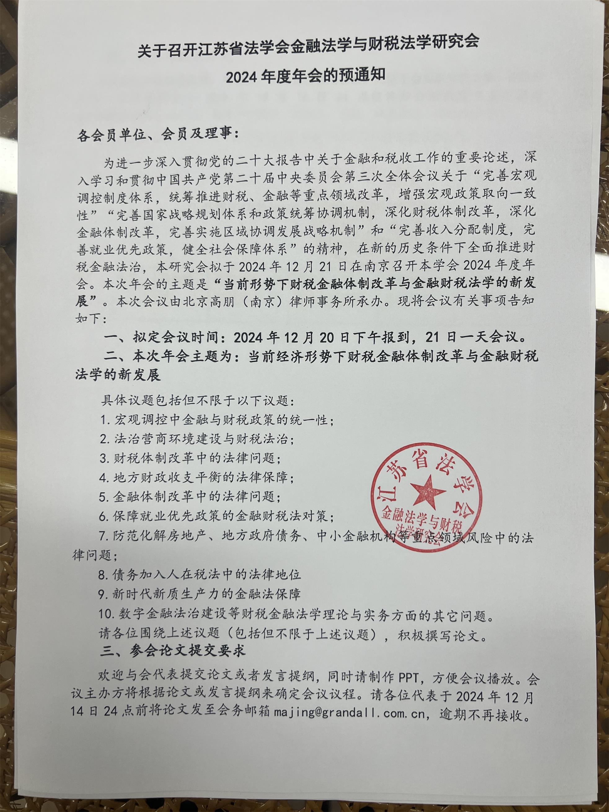 您好!欢迎来访江苏金融法学和财税法学研究会!今天是:2026年4月4日 星期六